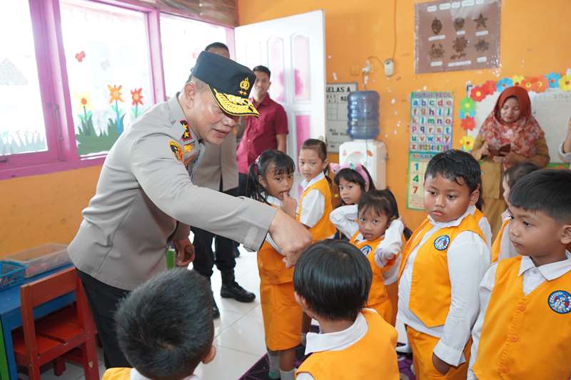 Dalam kunjungannya ke TK Pimstaf Kemala Bhayangkari, Kapolda meninjau langsung fasilitas pendidikan dan memastikan lingkungan sekolah mendukung tumbuh kembang anak-anak secara optimal.