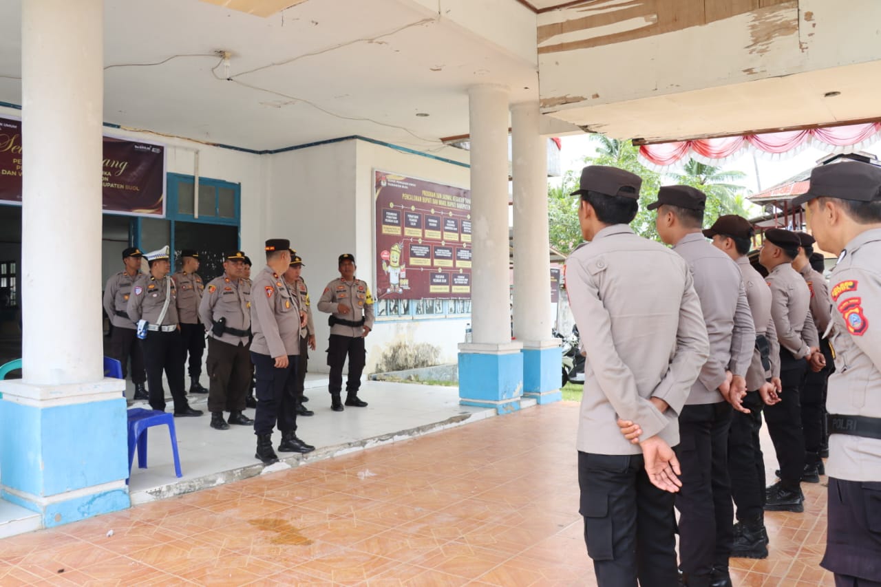 Jajaran Polres Buol yang dipimpin Karendal Opsres Kompol Dewa Nyoman Sujendra, SH laksanakan pengamanan rapat pleno terbuka penetapan Hasil Pilkada Bupati dan Wakil Bupati Buol 2024, Kamis (06/01/25) bertempat dikantor KPUD Buol.