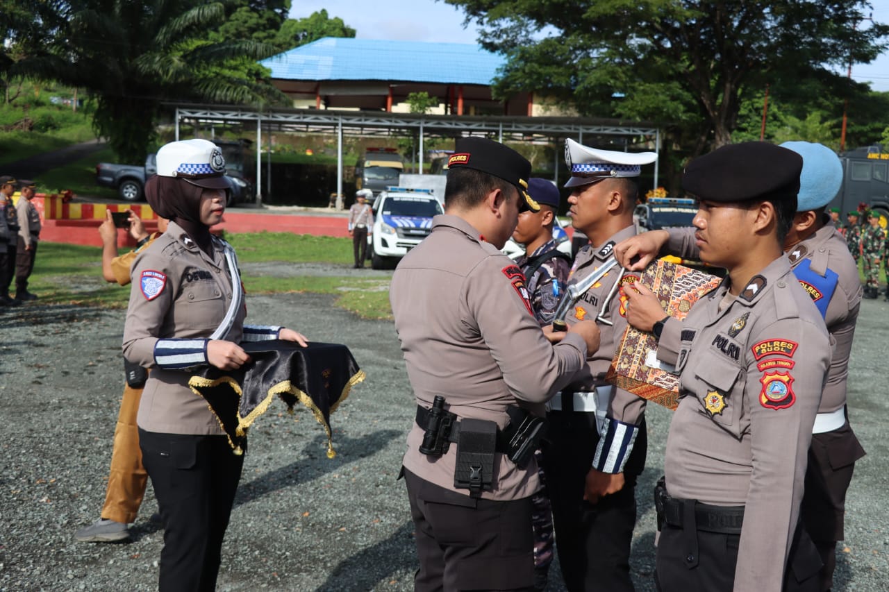 Kapolres Buol sebagai pimpinan apel pada kesempatan ini melakukan pemeriksaan pasukan apel serta penyamatan pita tanda operasi kepada perwakilan masing-masing dari Personil TNI, Sat Lantas, Sat Samapta, Satpol PP serta Dishub.