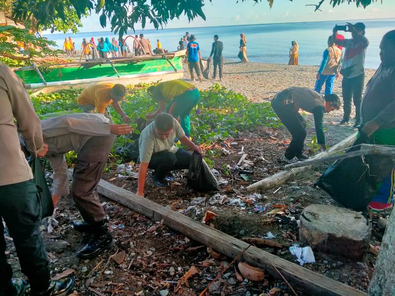 Polres Touna Bersihkan Sampah Di Pantai Taman JH Dalam Rangka Peringati Hari Lingkungan Hidup Sedunia
