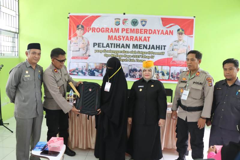Portal Sulteng, Touna – Program pemberdayaan masyarakat Satuan Tugas (Satgas) II Preemtif Operasi Madagoraya-2025 Tahap IV resmi dimulai di Kabupaten Tojo Una Una. Berfokus pada upaya deradikalisasi, program kali ini menyelenggarakan pelatihan menjahit bagi para istri eks narapidana terorisme (Napiter).