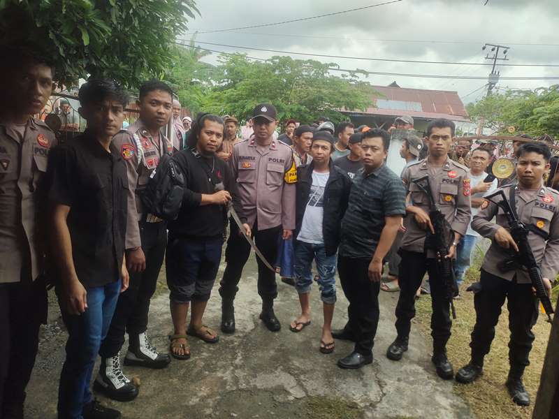 “Anggota mengambil langkah sigap dengan mengamankan pelaku di dalam kamar mandi menggunakan alat bantu tangga dan kayu balok. Petugas berhasil melumpuhkan pelaku sehingga parang yang dipegangnya dapat direbut tanpa ada korban jiwa,” lanjut Sunardi.