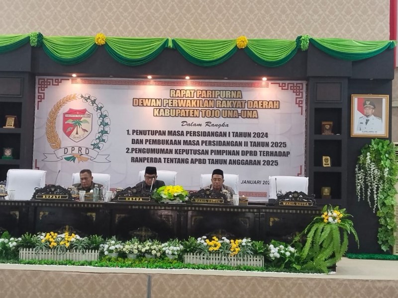 TOUNA – Dewan Perwakilan Rakyat Daerah (DPRD) Kabupaten Tojo Una-Una menggelar Rapat Paripurna membahas 2 agenda yang dilaksanakan di Ruang Rapat Paripurna